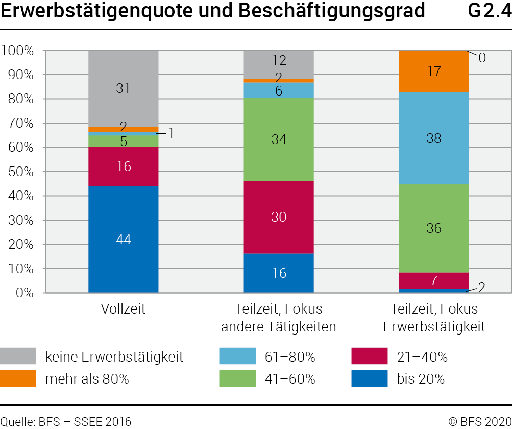| Vollzeit | Teilzeit, Fokus andere Tätigkeiten | Teilzeit, Fokus Erwerbstätigkeit | |